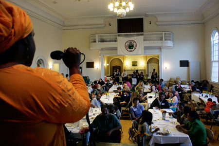 Established in 1977, Eastern Service Workers Association (ESWA) is a free and voluntary membership association run by and for Boston's service workers, temporary, domestic and other low-income workers and their families. Through the self-help efforts of our association members and community volunteers, ESWA has organized a year-round, 11-point Membership Beneļ¬t Program to help meet the immediate needs of our families while we organize together to fight for long-term solutions to poverty conditions caused by lack of living wages. Membership benefits include emergency food, clothing, preventive medical care and non-emergency dental care, legal advice and more.